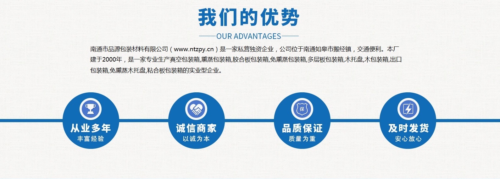 南通市品源包裝材料有限公司(m.33model.com)是一家私營(yíng)獨(dú)資企業(yè),公司位于南通如皋市搬經(jīng)鎮(zhèn),交通便利。本廠(chǎng)建于2000年,是一家專(zhuān)業(yè)生產(chǎn)真空包裝箱,熏蒸包裝箱,膠合板包裝箱,免熏蒸包裝箱,多層板包裝箱,木托盤(pán),木包裝箱,出口包裝箱,免熏蒸木托盤(pán),粘合板包裝箱的實(shí)業(yè)型企業(yè)。